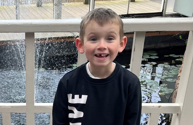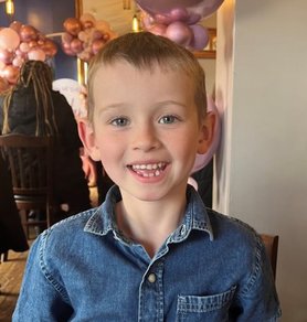 Oliver was diagnosed with high-risk neuroblastoma on 17 January 2020 – a lump had been found on his kidney and the cancer had spread to his bone marrow, skull and eye sockets. Chemotherapy started for Oliver the very next day. He had nine rounds altogether, quickly recovering each time, which meant he could enjoy the attention from the nurses and playing with toys in the playroom. He then had surgery to remove the tumour, high-dose chemotherapy, stem cell transplant (which made him very poorly) and radiotherapy.