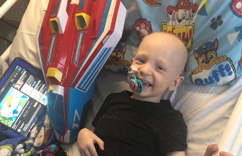In July 2020 Ollie became suddenly unwell and was admitted to Addenbrooke's. An MRI scan found a tumour sitting on his seventh and eighth cranial nerve near the brain stem which, following a biopsy, was confirmed to be relapsed neuroblastoma. 10-20% of the tumour was removed during surgery and with the intensive chemotherapy that followed, Ollie was back in remission. Ollie continued on to receive more chemotherapy, and cranial-spinal radiation.