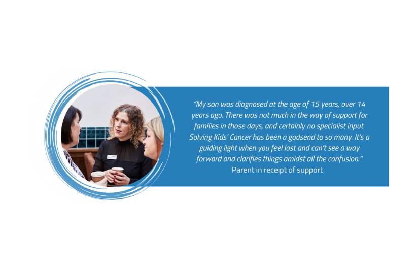 Finally, families tell us they would benefit from more practical, financial and emotional support – there are a range of excellent services available to families, and we won’t seek to duplicate what is already available – instead, alongside signposting where appropriate, we will broaden the range of support we provide to include a focus on bereavement, post-treatment and practical and financial support. We will always seek to develop this in partnership with other organisations where possible.